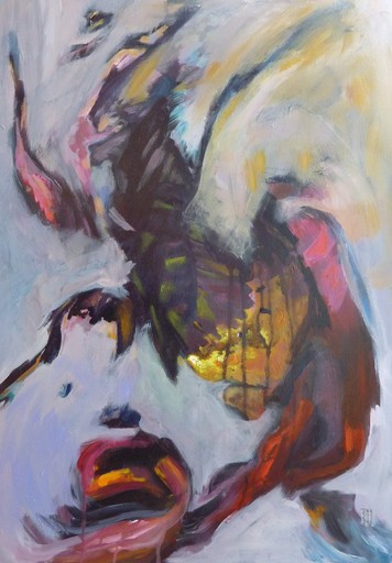 She has themes like the fossile reality, deformed human beings, the theme ‘human manipulation’ in which the social now to day problems (by all type of manipulation). Expression of emotion is of great importance in most of her works. Mixed technics (e.a. acrylic, Chinese ink, oil pastels)